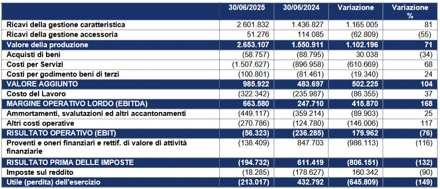 annuncia i risultati del Bilancio Consolidato redatto per il Primo Semestre 2025, e le prospettive per il futuro
